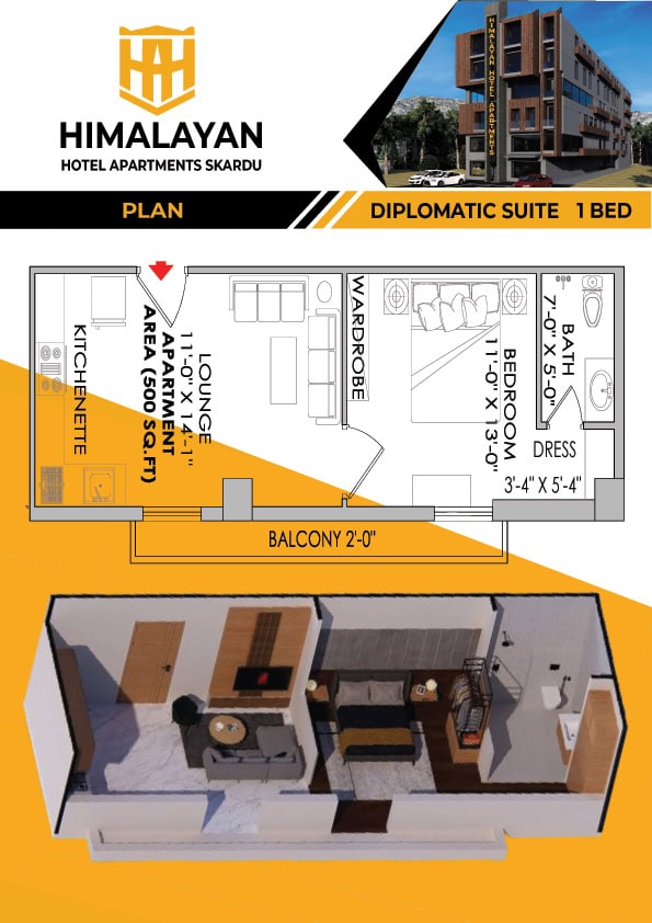 Enjoy beautiful views from your private balcony, a fully equipped kitchenette for light meals, and all modern amenities, including Free Wi-Fi, air conditioning, and a flat-screen TV. With its blend of comfort and functionality, our 1-Bed Apartment is ideal for a relaxing stay in the heart of Skardu.